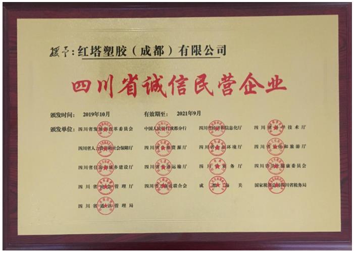 红塔塑胶(成都)有限公司入选四川省首届民营企业“诚信百千工程”名录