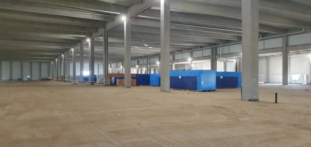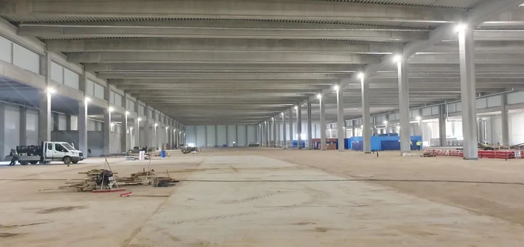 一期主体厂房内部,,,,,工业地板混凝土已经完成,,,,,雨水排放管线已装置完毕,,,,,正进入装备装置阶段。。。。。。。