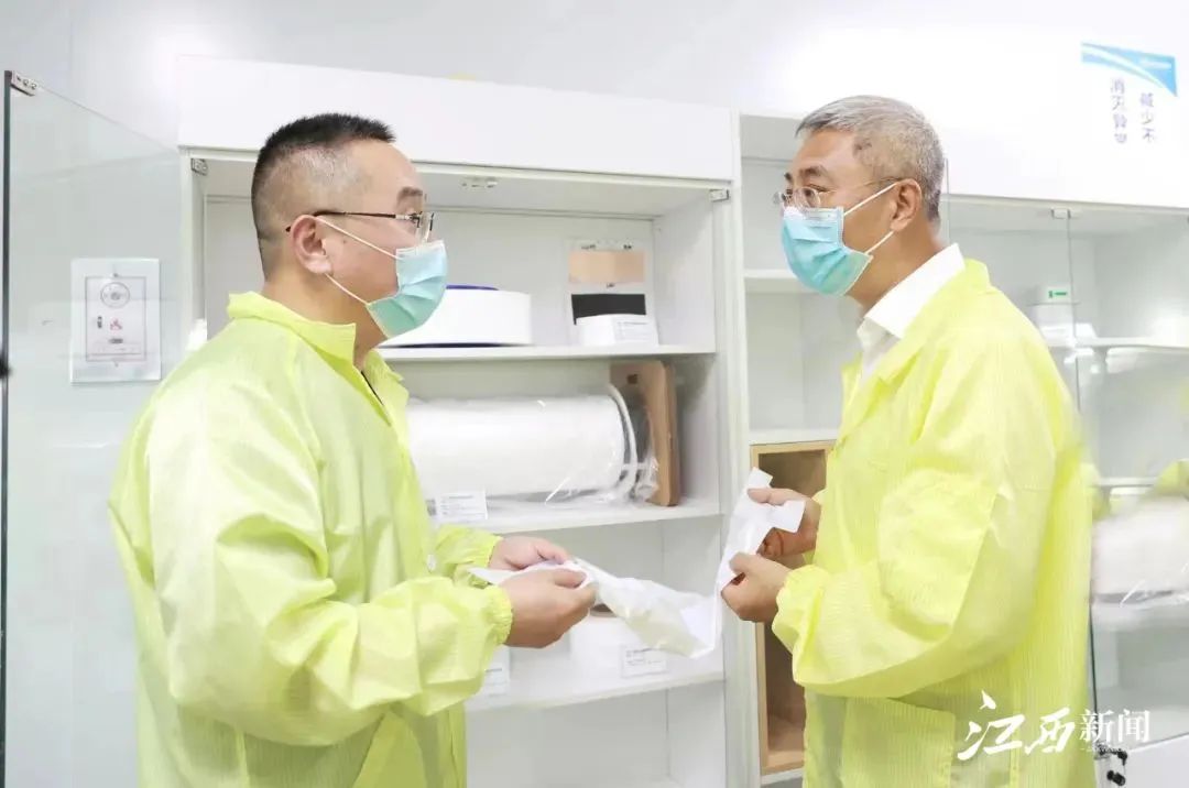尹弘书记一行深入江西通瑞的隔膜生产车间实地考察,,,,,仔细观察一卷一卷薄如蝉翼的锂电池隔膜通过自动化生产线,,,,,一直支解制品,,,,,运往动力电池企业。。。。。。。尹书记希望企业以市场为导向,,,,,一直推进产品升级、手艺迭代,,,,,致力掌握要害焦点科技,,,,,牢牢掌握生长的自动权。。。。。。。