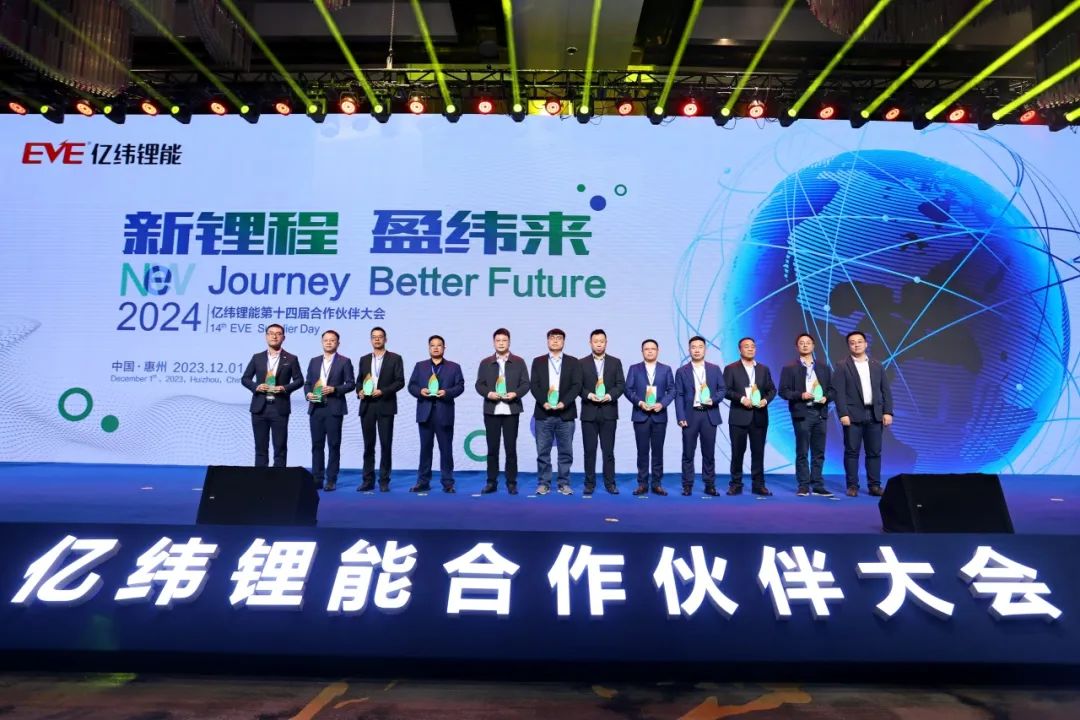 2023年12月1日,,,,,,,上海beats365获亿纬锂能“团结立异”奖,,,,,,,beats365股份副总裁吴量(右六)领奖。。。。。。。