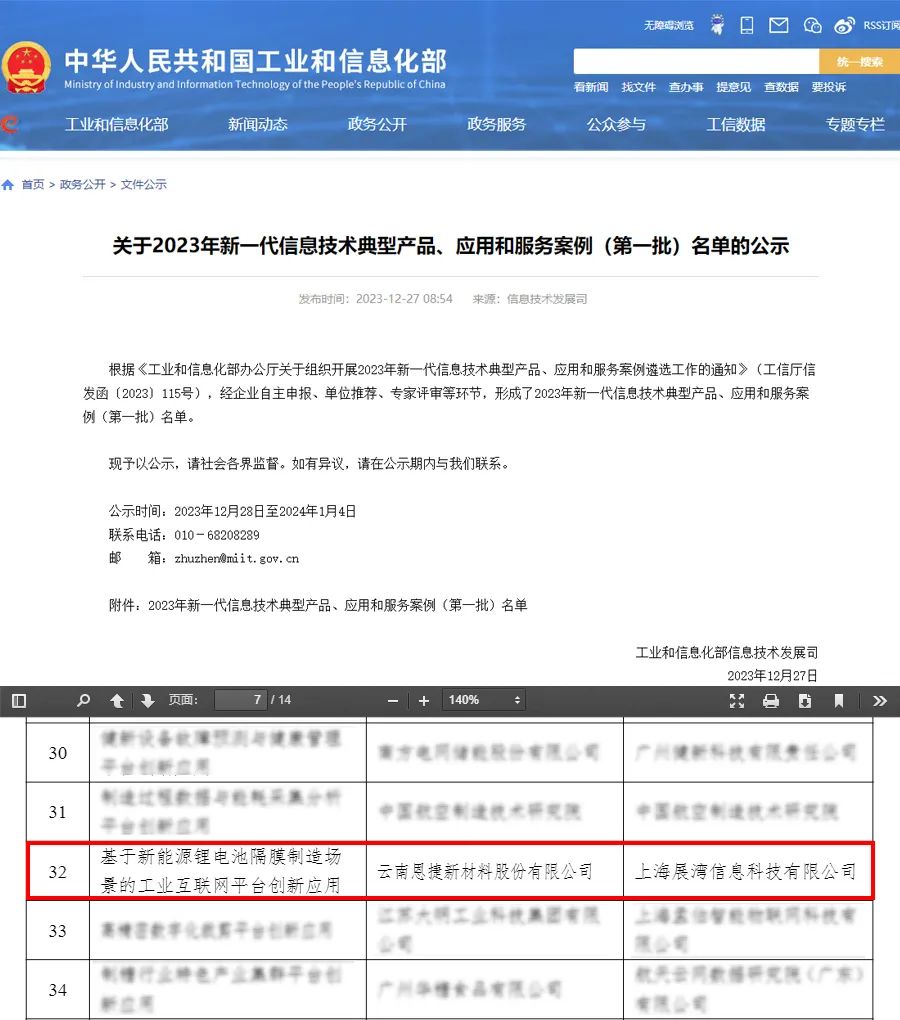 克日,,,,,,工信部公示了《2023年新一代信息手艺典范产品、应用和服务案例(第一批)名单》。。。。。。。。beats365股份信息化效果“基于新能源锂电池隔膜制造场景的工业互联网平台立异应用”乐成入选工业互联网平台-智能化制造偏向立异领航应用案例,,,,,,这是beats365迈向数字化、智能化的又一力证。。。。。。。。