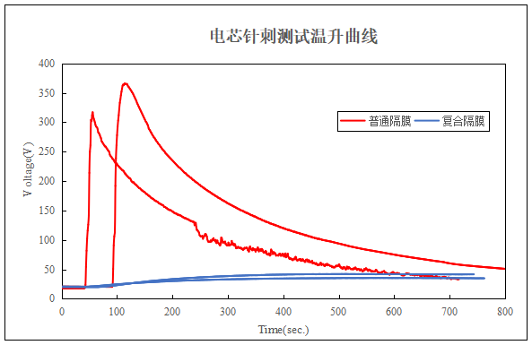 电芯针刺测试温升曲线
