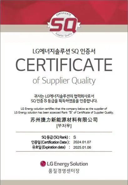“S级供应商”是LG新能源对其全球供应商揭晓的最高品级声誉,,,,,,,是对供应商产品品质全方位综合评定后的效果。。。。。