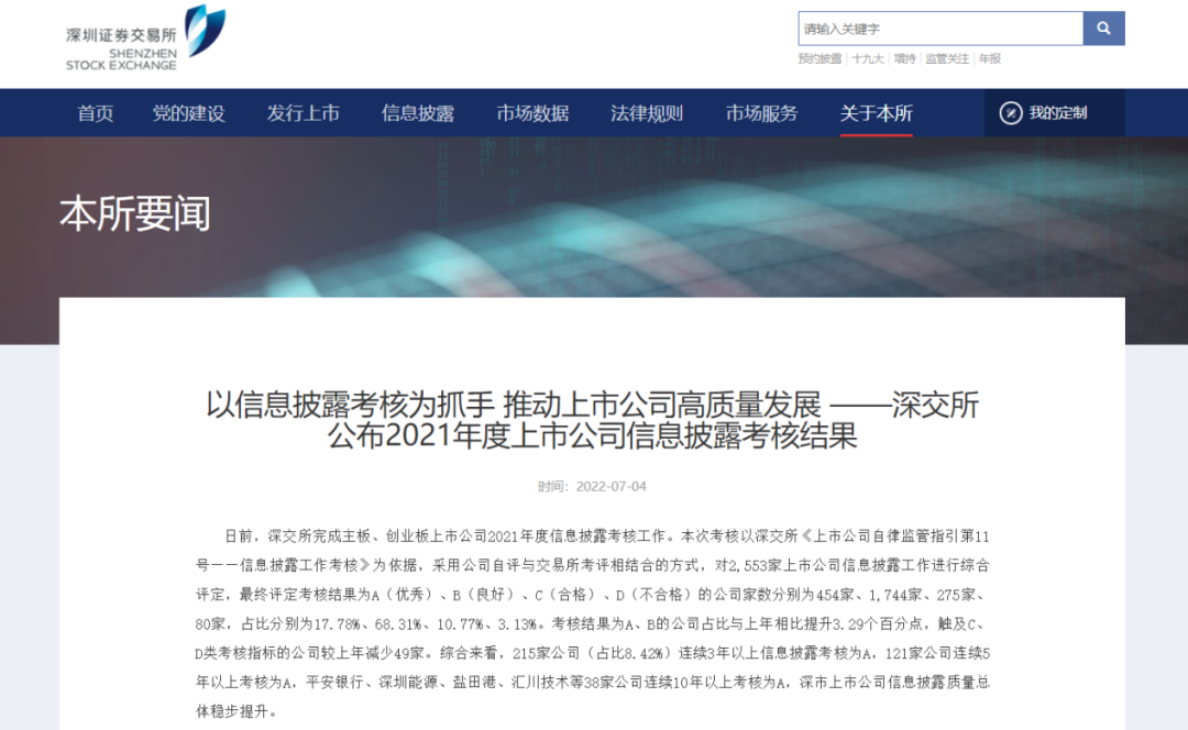±¾´ÎÉóºËÁýÕÖ2553¼ÒÉîÊÐÉÏÊй«Ë¾£¬£¬£¬£¬£¬£¬ÆäÖÐ454¼ÒÉÏÊй«Ë¾ÉóºËЧ¹ûΪ¡°A¡±£¨ÓÅÒ죩£¬£¬£¬£¬£¬£¬Õ¼±È17.78%¡£¡£¡£¡£¡£¡£¡£ÐÅÏ¢Åû¶ÖÊÁ¿ÊÇȨºâÉÏÊй«Ë¾ÖÊÁ¿µÄ¿Í¹Û¡¢Ö÷Òª±ê×¼¡£¡£¡£¡£¡£¡£¡£Éî½»Ëù×Ô2001ÄêÆðÒ»Á¬Ã¿Ä꿪չÐÅÏ¢Åû¶ÉóºËÊÂÇ飬£¬£¬£¬£¬£¬ÉóºËÖ÷ÒªÒÀ¾ÝΪÐÅÏ¢Åû¶ÖÊÁ¿£¬£¬£¬£¬£¬£¬Í¬Ê±ÍÅ½á¹æ·¶ÔË×÷ˮƽ¡¢¶ÔͶ×ÊÕßÈ¨Òæ±£»£»£»£»£»£»¤Ë®Ò»ÂÉÒòËØ£¬£¬£¬£¬£¬£¬´Ó¸ßµ½µÍ»®·ÖΪA¡¢B¡¢C¡¢DËĸöÆ·¼¶£¬£¬£¬£¬£¬£¬ÍŽáî¿ÏµÊµ¼ùºÍͶ×ÊÕß¹ØÇУ¬£¬£¬£¬£¬£¬½øÒ»²½Ç¿»¯ÐÅÏ¢Åû¶ÉóºËÕýÏòÖ¸µ¼×÷Óᣡ£¡£¡£¡£¡£¡£