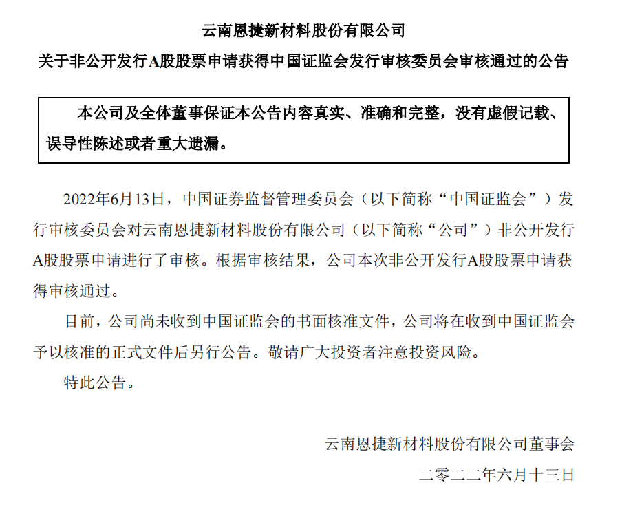 本次非果真刊行申请获批,,,,,,有利于增进公司的恒久可一连生长,,,,,,为进一步提升市场竞争力提供了有力包管,,,,,,将助力牢靠公司全球锂电池隔膜行业的龙头职位。。。。。。