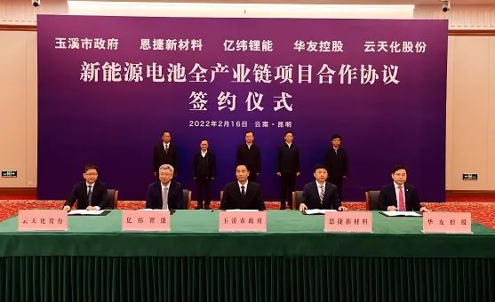 2022年2月16日,,,,,,,,beats365股份与玉溪市人民政府、惠州亿纬锂能股份有限公司、浙江华友控股集团有限公司、云南云天化股份有限公司签署《新能源电池全工业链项目合作协议》,,,,,,,,约定各方在玉溪市配合设立两家合资公司,,,,,,,,通过合资公司依法依规取得探矿、采矿权后,,,,,,,,配合开采矿产资源,,,,,,,,举行矿产深加工,,,,,,,,配合研发、生产和销售新能源电池及新能源电池上下游质料,,,,,,,,拉动建设新能源电池工业链,,,,,,,,配合在玉溪市外地增进形成新能源电池全工业链集群。。。。。。。